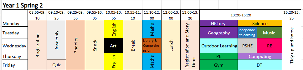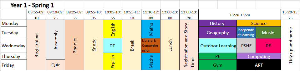 Year 1 Weekly Timetable
