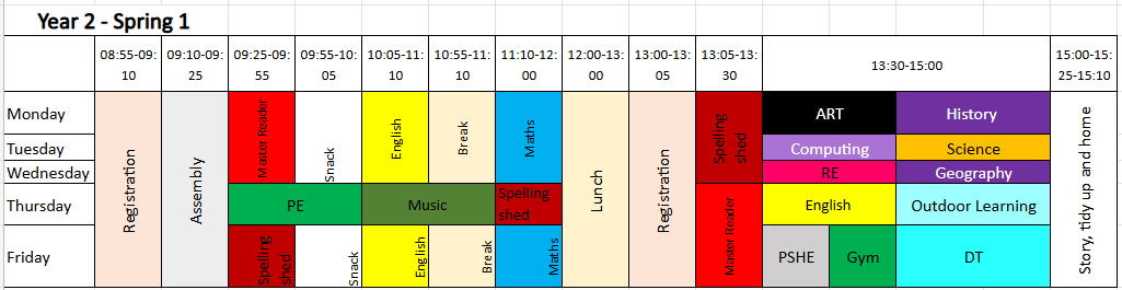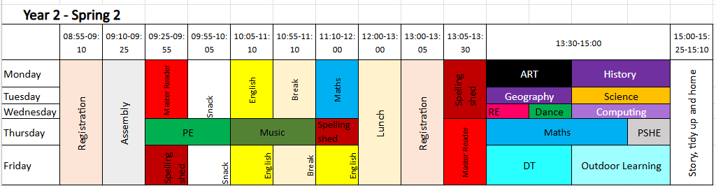 Year 2 Weekly Timetable