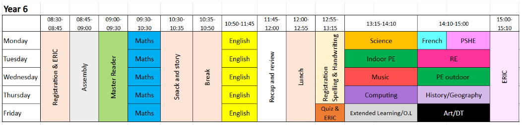 Year 6 Weekly Timetable: