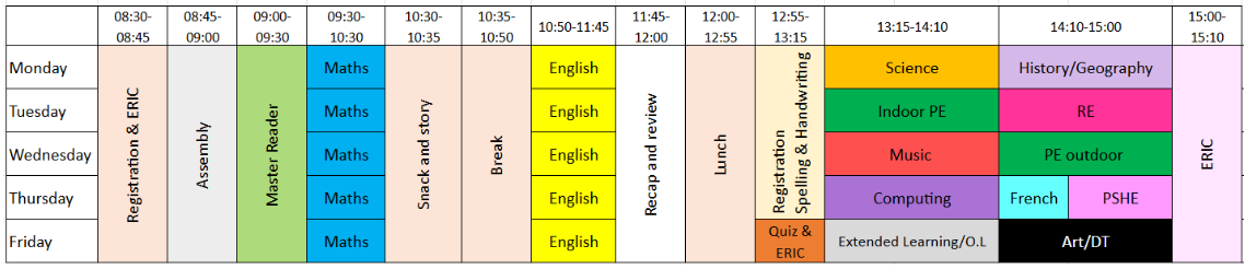 Year 6  Weekly Timetable:
